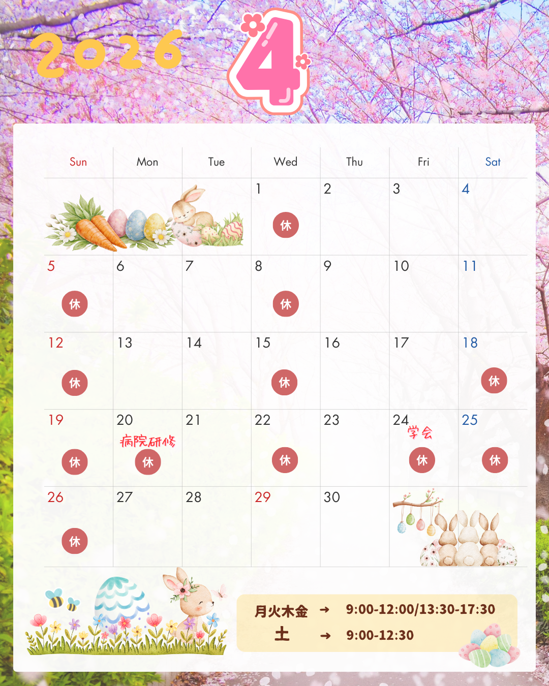 4月診療日 2026 3/16 こんにちは。ネイチャーオーラクリニックです。 4月の診療日のお知らせです。 ご予約の際は診療日をご確認のうえ、よろしくお願いいたします。 TOPへ戻る 施術メニューを見る